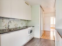- Jääkaappi/pakastin, mikroaaltouuni, astianpesukone, sähköliesi ja uuni, ulosvedettävä silityslauta