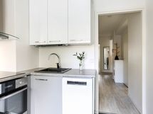 - Varustus: Jääkaappi/pakastin (uusittu n. 4 v. sitten), kiertoilmauuni, induktioliesi, liesituuletin, astianpesukone (uusittu n. 4 v. sitten). Lattiat laminaatti, seinät maalattu. Keittiö remontoitu 2016.