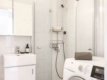 - Pesutilojen kuvaus: Varustus: Suihku, suihkuseinä, wc-istuin, allas, allaskaappi, peilikaappi, bidé-suihku, pesukoneliitäntä, kuivausteline.