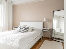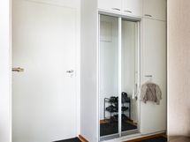 Keittiö: parketti, seinät tapetoitu. Olohuone: parketti, seinät maali + tapetti. Makuuhuone 1: parketti, seinät maali + tapetti. Sauna: panelointi. Kylpyhuone: laatoitus.
