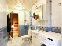 Kylpyhuoneessa on suihku, peilikaappi sekä allaskaappi. Saunassa on sähkökiuas. Kylpyhuoneessa on pesukoneliitäntä sekä mukavuuslattialämmitys.