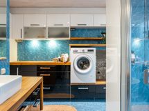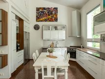 - Liesi: integroitu. Kylmäsäilytys: jääkaappi, pakastin. Varustus: mikroaaltouuni, astianpesukone, kiinteät valaisimet, liesituuletin / hormi. Lattia: Graniitti (lattialämmitys)