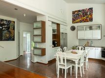 - 6-7h, k, kph/wc/s, khh, 2x erill. wc, eteinen, kuisti, lasitettu terassi, terassi, parveke, autokatos, varasto, tekn. tila.
