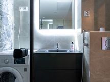 - Suihku, Pesukoneliitäntä, Tilaa pesukoneelle, Käsisuihku, Kaapisto, Allas, Suihkuseinä, WC-istuin, Peili