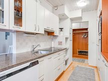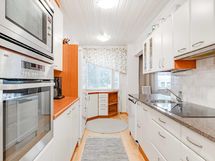 - Kaapistot, jääkaappi/pakastin, keraaminen liesi, erillisuuni- ja taso, astianpesukone (2024 Grundig), liesituuletin/ aktiivihiilisuodatin.