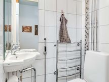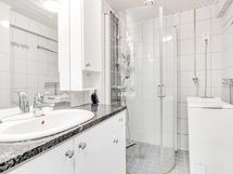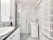 - Kylpyhuone, suihku/suihkukaappi, peili, allaskaappi, pyyhekuivain. Erillinen wc, pesuallas, peili, pyyhekuivain.
