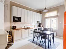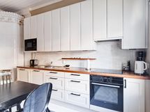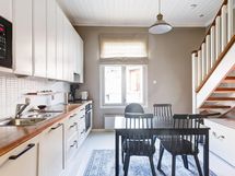 - Jenkkikaappi (Smeg), keraaminen liesi (Smeg), erillisuuni- ja taso, liesikupu/-tuuletin, mikroaaltouuni, astianpesukone, kakluuni, kaapistot, kiinteät valaisimet