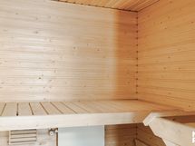 - Kuvaus: Sauna sijaitsee kätevästi kylpyhuoneen yhteydessä. Se on puupaneloitu ja varustettu helppokäyttöisellä sähkökiukaalla, joka tarjoaa mukavat löylyt arjen iloksi.