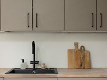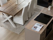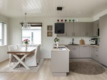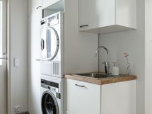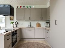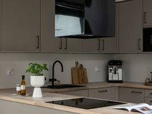 - Liesi: induktio. Kylmäsäilytys: jääkaappi, pakastin. Varustus: mikroaaltouuni, astianpesukone. Työtaso massiivitammea.