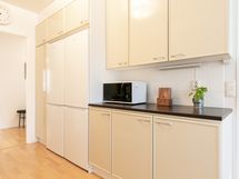 - Liesi: keraaminen. Työtasot: laminaatti, metalli. Kylmäsäilytys: jääkaappi/pakastin. Varustus: liesituuletin, astianpesukone.