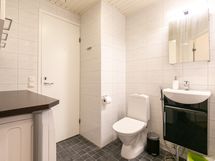 - Varustus: suihkuseinä, lattialämmitys, suihku. Erillisen WC:n kuvaus: WC:ssä lisäksi kodinhoitotila, jossa on lastenhoitopöytä/taso sekä tilaa pesukoneelle ja kuivausrummulle. Varustus: pesukoneliitäntä, peilikaappi, bidee-suihku.