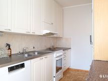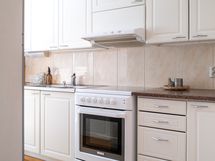 - Varusteet: jenkkikaappi, astianpesukone. Työtaso: laminaattitaso, metalli/rosteritaso. Liesi: sähköliesi, liesituuletin hormilla