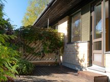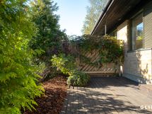 - Asunnossa on terassi. Takapihalla eteläterassi, jota rajaa matalakasvuinen aita.