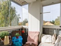 - ulkopuolinen, lasitettu. Parvekkeen suunta: luode, länsi