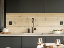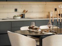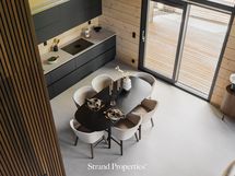 - Liesi: integroitu, induktio, erillisuuni. Kylmäsäilytys: jääkaappi, pakastin. Varustus: liesituuletin, mikroaaltouuni, astianpesukone. Base Beton lattiat ja seinät hirsi sekä osittein rimoitettu akustiikka/sisustuslevy. Kalusteet Esan levykaluste. Katon materiaali on Konto.