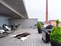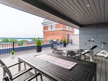 - Kattoterassilta loistavat näkymät etelän suuntaan Pyhäjärvelle.