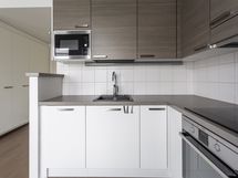- Keittiön varusteet: Erillisuuni, jääkaappipakastin, liesituuletin, liesi ja astianpesukone. Liesi: Induktioliesi ja erillisuuni. Työtason materiaali: Laminaatti.