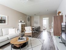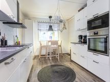 - Keittiön varusteet: Liesi, mikroaaltouuni, jääkaappipakastin, liesituuletin, astianpesukone ja kiinteät valaisimet. Liesi: Induktioliesi ja integroitu. Työtason materiaali: Laminaatti. Keittiö remontoitu 2017.