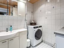- Pesutilojen varusteet: Peilikaappi, suihkuseinä, allaskaappi, wc-istuin, suihku, pesukoneliitäntä ja kiinteät valaisimet. Pesutilojen kuvaus: Suihkutilaan / suihkuhuoneeseen 11/2023 lattialaatta+ suihkuseinän laattasaumojen vaihto ja silikonisaumojen uusinta sekä samassa yhteydessä nanopinnoitus (Vevex). Erillisen WC:n varusteet: Bidee-suihku ja peilikaappi.