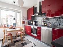 - Keittiön varusteina ovat jääkaappipakastin, joka on uusittu noin 2 vuotta sitten. Erillisuuni kiertoilmalla, Induktioliesitaso (liesitasossa halkeama), liesituuletin ja astianpesukone.