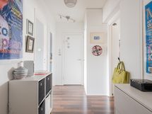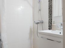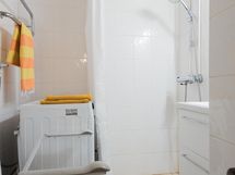 - Kylpyhuoneesta löytyy suihku, peilit, kaapit, allaskaappi, pesukoneliitäntä, lattialämmitys ja kiinteät valaisimet.