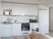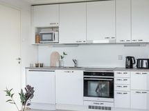 Keittiön varusteluun kuuluu jääkaappipakastin, erillisuuni, liesitaso Induktio, liesituuletin, astianpesukone, kaapistot.