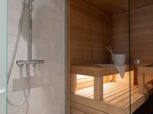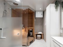 - Varusteet: sähkökiuas. Seinämateriaali: paneeliseinä, lasiseinä. Lattiamateriaali: laattalattia
