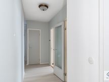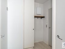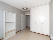 Käytännöllinen vaatehuone, eteisen ja makuuhuoneen kaapistot tuovat asuntoon runsaasti säilytystilaa.