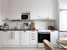 - Keittiössä on laminaattilattia ja maalatut seinät.