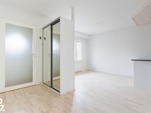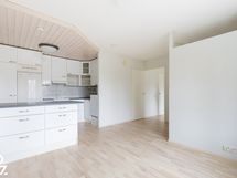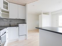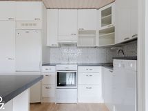 - Keittiön varusteet: Jääkaappipakastin, uuni, liesi ja liesituuletin. Työtason materiaali: Laminaatti.