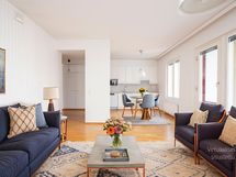 Asunnossa on laadukkaat materiaalit, kuten parkettilattiat ja maalatut seinäpinnat, jotka luovat kodikasta tunnelmaa. Asunto ollut ainoastaan yhdellä omistajalla, joten pinnat ovat todella hyvässä kunnossa. Keittiössä on keraaminen liesi, jääkaappi sekä astianpesukone, joka on uusittu vuonna 2024. Kylpyhuone on reilunkokoinen ja vaalea sävy antaa raikkaan ilmeen. Oman saunan löylyissä rentoudut arjen kiireistä.