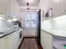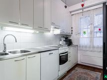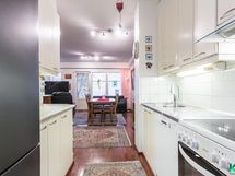 - Jääkaappi/pakastin, keraaminen liesi, liesituuletin, astianpesukone, kaapistot, kiinteät valaisimet