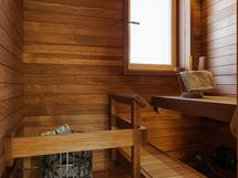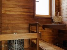 Kuvaus: Ikkunallinen sauna ja Harvian pilarikiuas. sähkökiuas