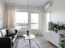 Myyntiimme on juuri tullut uudenveroinen ja tehokas saunallinen kolmio (3/6krs). Asunnossa on kaikki tarpeellinen ja vähän ylikin. Oikea eteinen, olohuone ja keittiö on jaettu kauniisti saarekkeella. Lähes huoneiston levyinen tilava ja lasitettu parveke on lännen suuntaan. Ilmalämpöpumppu hoitaa tarvittaessa viilennyksen. Tilava ja tasokas kylpyhuone, jossa ikkunallinen sauna tuo luonnonvaloa tilaan. Tämä on kiva koti.