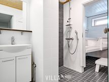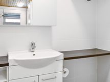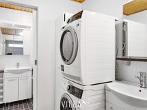 - Pesutilojen kuvaus: Pesuhuoneen yhteydessä kodinhoitotila ja erillinen wc. Varustus: suihkuseinä, pesukoneliitäntä, wc-istuin, suihku. Erillisen WC:n kuvaus: Erillinen wc alakerrassa ja toinen erillinen wc yläkerran pesutilojen yhteydessä. Varustus: peilikaappi, bidee-suihku.