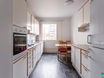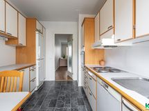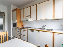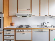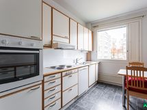 - Keittiö remontoitu vuonna 1998, HTH-keittiöt. Jääkaappi/pakastin, kiertoilmauuni, sähköliesi, astianpesukone, liesituuletin hormiin, kaapistot. Seinät maalattua, lattia vinyylilaattaa, välitilassa levy. 2025: välitilalevy ja vetimet uusittu ja seinät ja katto maalattu.