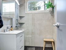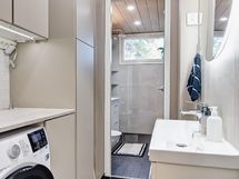 - Kylpyhuone, suihku, peilikaappi, pesukoneliitäntä, lattialämmitys (bluetooth ohjaus), kylpyhuonekaapisto, kiinteät valaisimet, vesikiertoinen pyyhekuivain