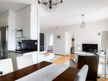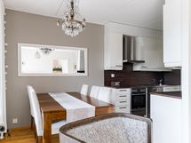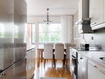 - Keittiössä induktioliesi/ kiertoilmauuni, liesituuletin, astianpesukone, jääkaappi, pakastinkaappi.