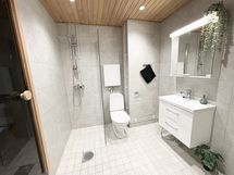 - Suihku, Suihkuseinä, Laattaseinä, Laattalattia, Allaskaappi, Peilikaappi, Lattialämmitys