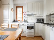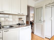 - Varustus: Jääkaappi, pakastin, keraaminen lattialiesi, astianpesukone, liesikupu, kiinteät kaapistot ja kiinteät valaisimet.