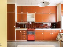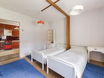 Keittiön varusteet: Jääkaappi, liesituuletin ja liesi. Liesi: sähköliesi. Työtason materiaali: Laminaatti.