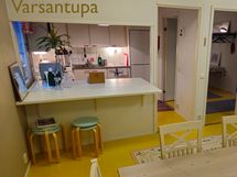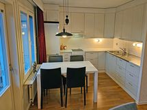 - Paljon kaappitilaa, Pesukoneliitos, Laminaattitasot, Sähköliesi, Liesituuletin, Jää-pakastinkaappi, Suuri tiskipöytä