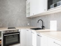- Keittiön varusteet: Liesi, jääkaappipakastin ja erillisuuni. Liesi: Induktioliesi ja erillisuuni. Työtason materiaali: Laminaatti. Upea juuri remontoitu keittiö!.