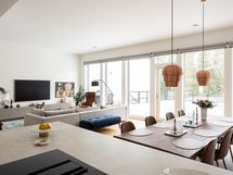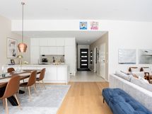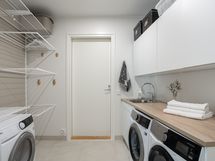 Sisään astuessasi taloon, huomaat heti sen modernin ja tyylikkään ilmeen. Suuret ikkunat tuovat runsaasti valoa tilaan, joka tekee tästä kodista viihtyisän. Keittiö ja olohuone on nykytrendin mukaisesti yhtenäistä tilaa ja suunniteltu sopimaan tämän päivän elämäntyyliin ja tarpeisiin, jolloin yhteiset hetket perheen tai ystävien kanssa ovat helppoja ja mukavia. Talossa on kolme makuuhuonetta, jotka tarjoavat hyvät tilat perheen tarpeisiin tai mahdollistavat etätyöhön mukavat puitteet. Asunnossa on kaksi kylpyhuonetta. Isossa kylpyhuoneessa on kaksi suihkua ja kokonaisuuden kruunaa tyylikäs akvaariosauna. Toisessa kylpyhuoneessa on wc-istuin ja käynti suoraa makuuhuoneeseen. Lisäksi asunnossa on vielä erillinen vessa. Kodinhoitohuoneessa on paljon kaappi- ja kuivaustilaa ja käynti suoraan ulos.