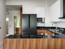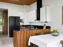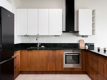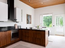 - Työtasot: kivi. Jääkaappi/pakastin, uuni, induktioliesi, liesituuletin, astianpesukone, mikroaaltouuni.