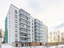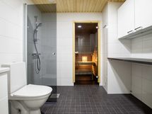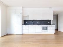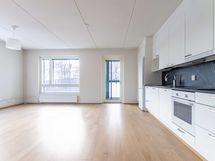 Tähän asuntoon pääset muuttamaan sen ensimmäiseksi asukkaaksi! Tämän 5/8 kerroksen asunnon suurista ikkunoista ja lasitetulta parvekkeelta aukeaa rauhalliset ja luonnonläheiset maisemat etelään. Asunnon keittiö ja olohuone ovat yhtä valoisaa ja suurta tilaa, johon mahtuu hyvin oleskelemaan ja ruokailemaan suuremmallakin porukalla. Keittiössä hyvää kontrastia muuten vaaleaan asuntoon tuo tason ja välitilan tumma laminaatti. Asunnon kaksi makuuhuonetta on sijoitettu eri puolille asuntoa, ja niissä molemmissa on vaatekaapit. Lisäksi asunnon eteisessä on paljon kaappitilaa ja huoneistolle kuuluu yhtiön tiloissa oleva häkkivarasto. Tämän asunnon kylpyhuone on erityisen toimiva, sillä siellä on taso, jonka alle saat pyykinpesukoneen ja kuivausrummun, sekä paljon kaappitilaa. Kylpyhuoneen yhteydessä on asunnon toinen wc, ja oma sauna tyylikkäällä Harvian kiukaalla. Tilavan eteisen yhteydessä on asunnon toinen erillinen wc. Kaikissa asunnoissa on valoa tuovat suuret ikkunat, laadukas kovapuulattia ja valkoiseksi maalatut seinät.