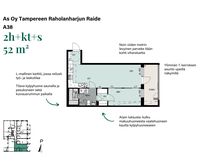 Seitsemännen kerroksen selkeälinjainen ja helposti kalustettava kaksio. Näkymät avautuvat idän puolen puistoalueeseen ja ehkä jopa sen yli Pyhäjärven suuntaan. L-mallinen keittiö, jossa reilusti lasku-, työ-, ja säilytystilaa. Ruokailutila ja olohuone rytmittymät mukavasti omiksi tiloikseen. Makuuhuoneen seinän sisään liukuvat ovet helpottavat sisustamista. Arjen luksuksena vaatehuone, tilava sauna ja kylpyhuone sekä iso lasitettu parveke puistoalueen suuntaan.