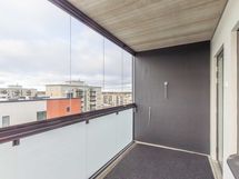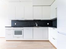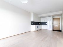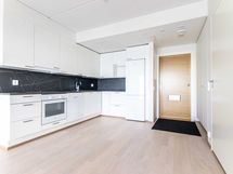 Tähän asuntoon pääset muuttamaan sen ensimmäiseksi asukkaaksi! Tämän 7/8 kerroksen asunnon ikkunoista ja lasitetulta parvekkeelta aukeaa maisemat länteen ilta-auringon suuntaan. Asunnossa on avara kaksion pohjaratkaisu, jossa keittiö ja olohuone ovat yhtä suurta tilaa. Keittiössä hyvää kontrastia muuten vaaleaan asuntoon tuo tason ja välitilan tumma laminaatti. Asunnon makuuhuoneessa on koko seinän levyiset vaatekaapit, jonka lisäksi eteisessä on kaappitilaa ja huoneistolle kuuluu yhtiön tiloissa oleva häkkivarasto. Tämän asunnon kylpyhuone on tilava, sillä siellä paikka pyykinpesukoneelle. Kylpyhuoneen yhteydessä on asunnon wc ja oma sauna. Kaikissa asunnoissa on valoa tuovat suuret ikkunat, laadukas kovapuulattia ja valkoiseksi maalatut seinät.