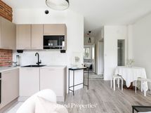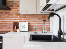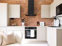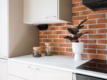 - Liesi: induktio, erillisuuni. Työtasot: laminaatti. Kylmäsäilytys: jääkaappi/pakastin. Varustus: liesituuletin, mikroaaltouuni, astianpesukone.