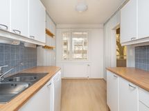 - Keittiössä jääkaappi, pakastekaappi, lattialiesi, liesituuletin, kaapistot, kiinteät valaisimet sekä tila uudelle astianpesukoneelle.